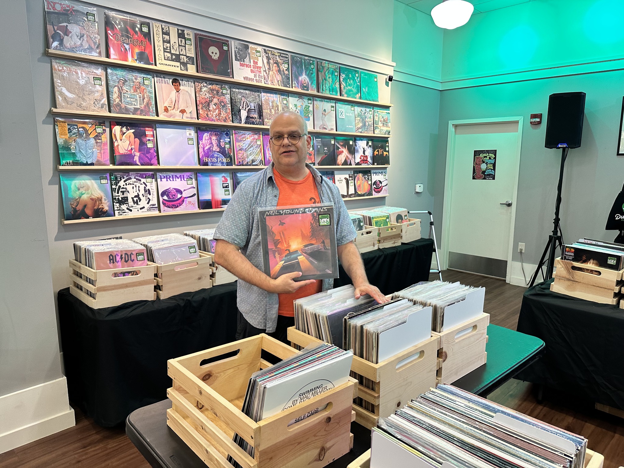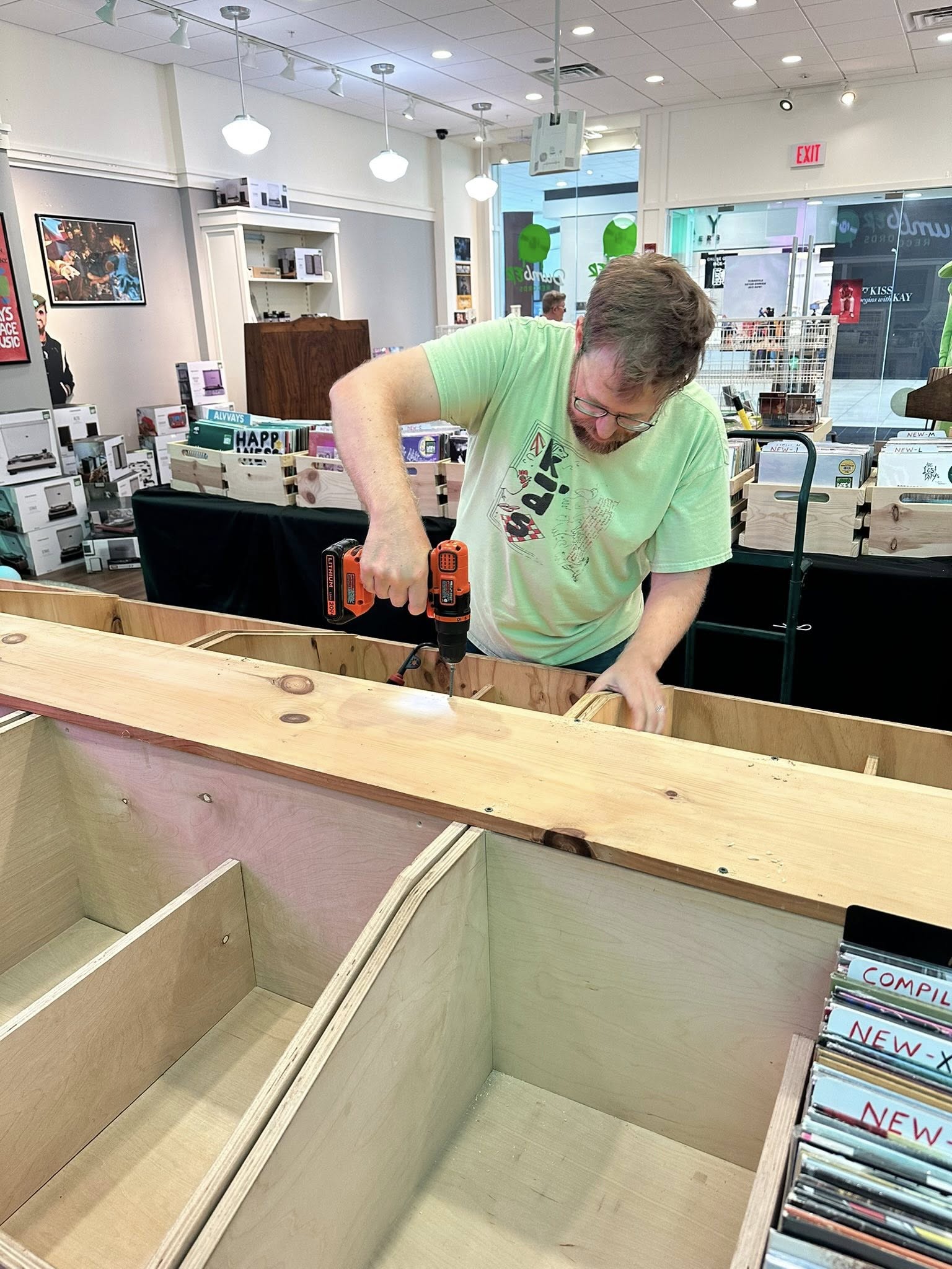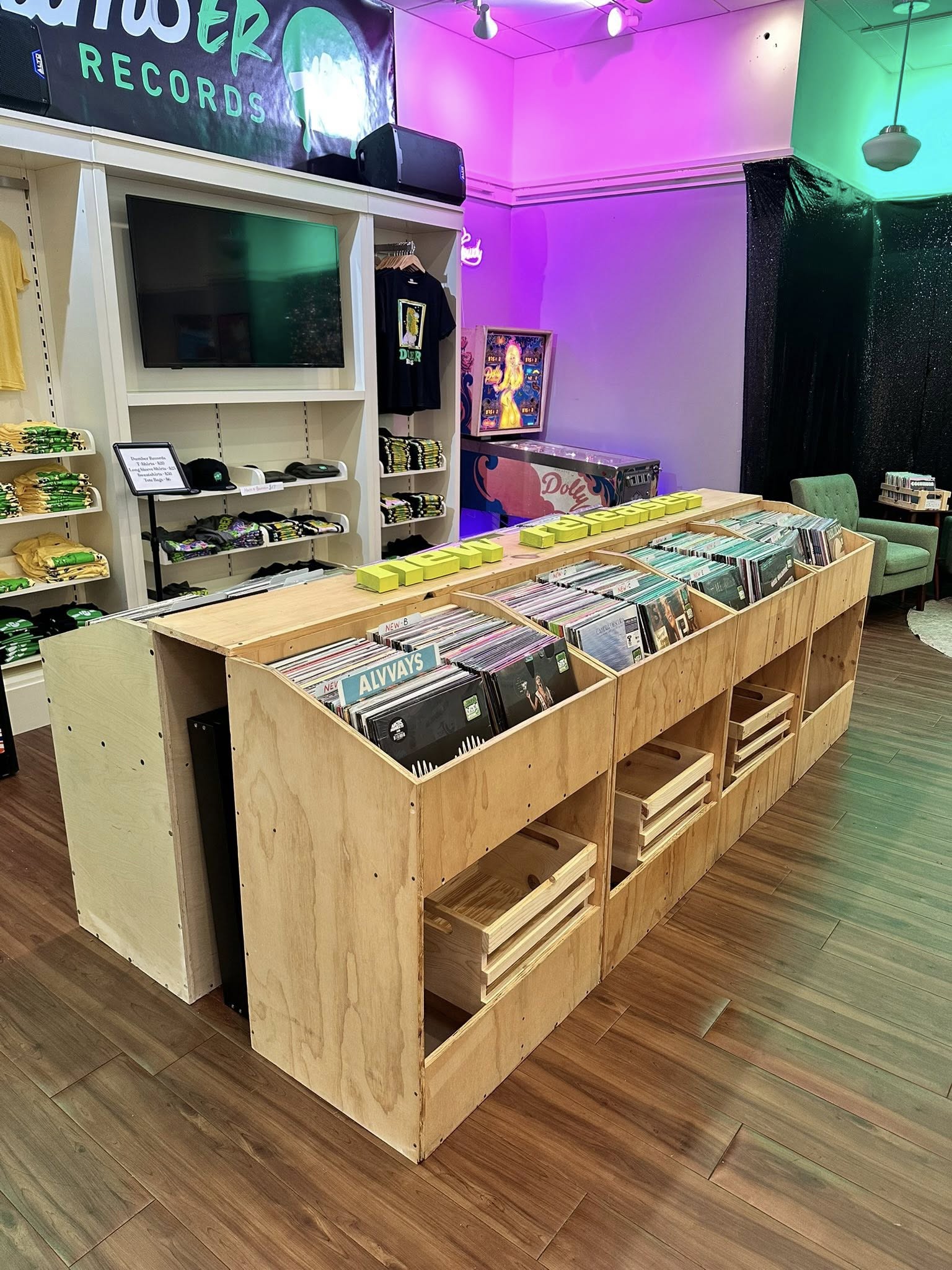 Boy have we been busy lately. We just picked up a bunch of record shelving and fixtures last week and have been busy getting all that situated at our mall store. It’s looking so good! More pics of that at the bottom here.