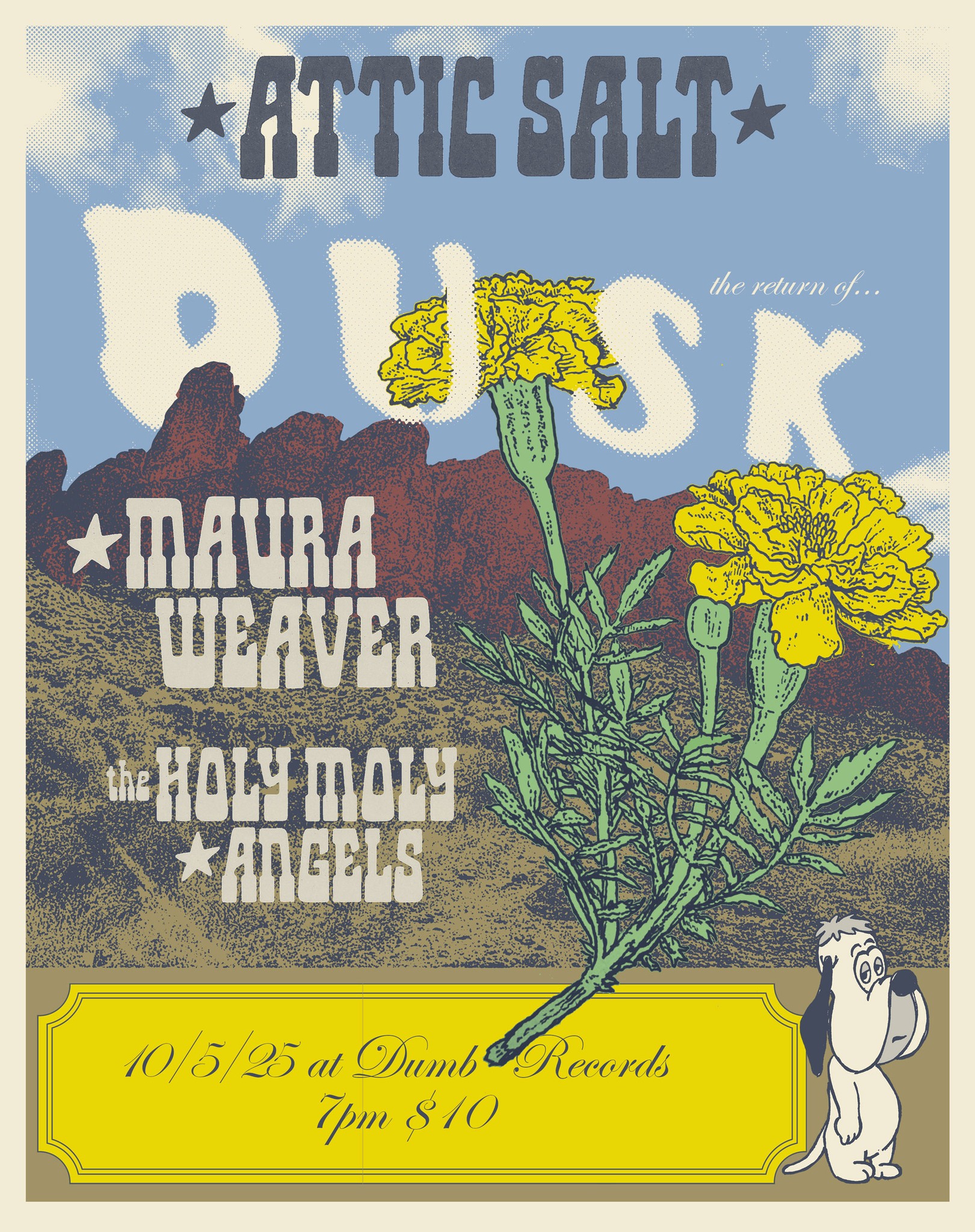 Speaking of events, coming up we have this very very very very very very very very good country punk/shoegaze/indie show happening downtown on Sunday. Everyone who has seen Dusk when they have performed here in the past have fallen in love. Not to mention a rare treat seeing Attic Salt, a very great artist form Cinci Maura Weaver and the hot new band Holy Moly Angels. Not bad for 10 buck-a-roos.